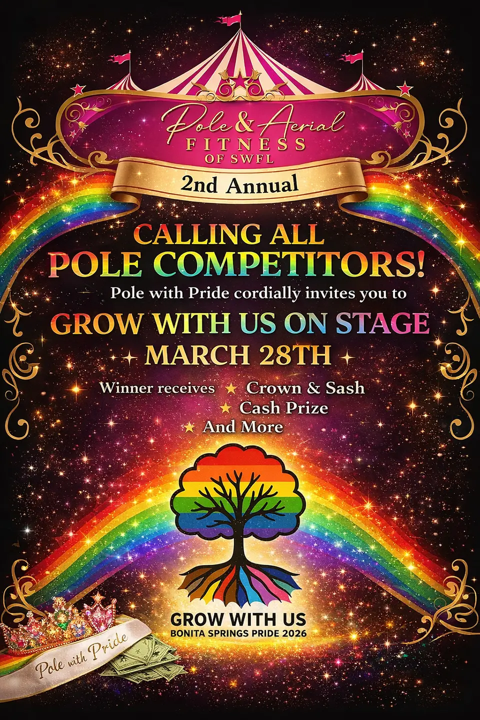 Pole With Pride cordially invites you to GROW WITH US ON STAGE! Event takes place March 28th. The winner will receive: